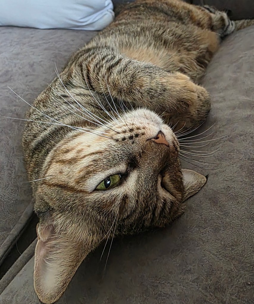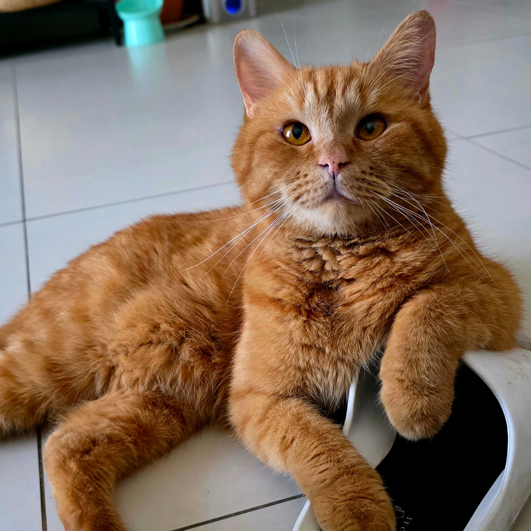 The drama queen of the house. She lives up to her name. Puts her nose everyone’s business, always riling up the house like she’s hosting a cat reality show. But also the softest cuddle bug who LOVES affection (on her terms, of course). I call her the cuddle monster.